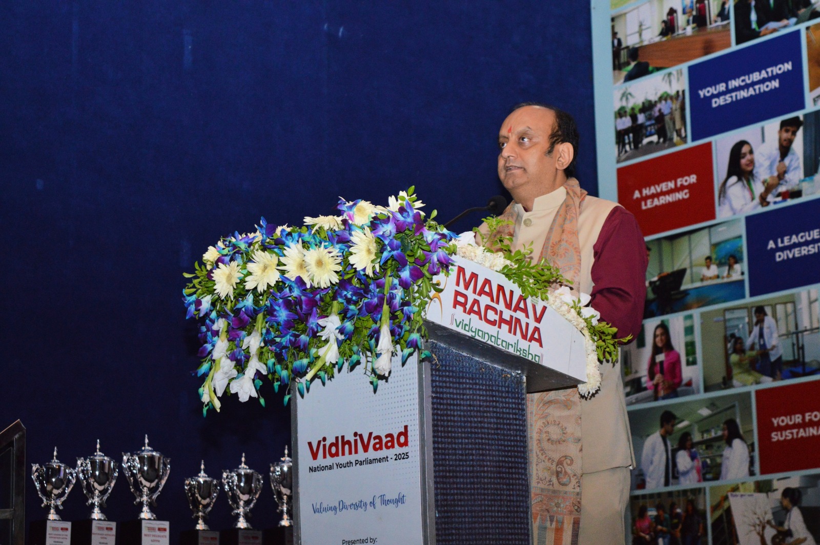 Faridabad Hindustanabtak.com/Dinesh Bhardwaj : 1 अक्टूबर। राज्यसभा सदस्य और बीजेपी राष्ट्रीय प्रवक्ता डॉ. सुधांशु त्रिवेदी मानव रचना विश्वविद्यालय (MRU) के स्कूल ऑफ लॉ द्वारा आयोजित विद्हिवाद यूथ पार्लियामेंट में मुख्य अतिथि रहे। छात्रों को संबोधित करते हुए उन्होंने युवा पीढ़ी से आह्वान किया कि वे सूचित संवाद, नीतिनिर्माण और नेतृत्व पहलों में सक्रिय भागीदारी करें। उन्होंने उन्हें ‘भारत के लोकतांत्रिक भविष्य के संरक्षक’ बताया।