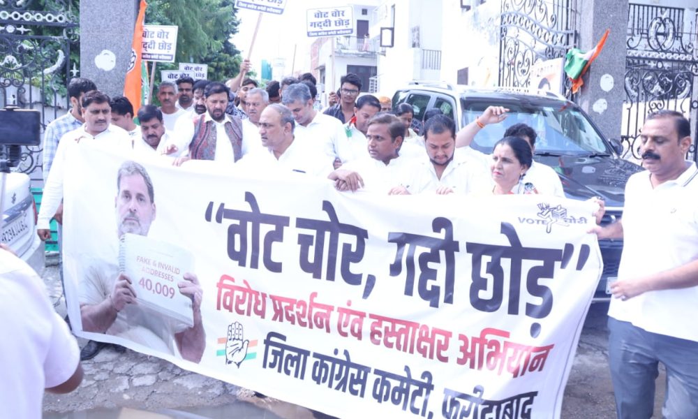 Faridabad Hindustanabtak.com/Dinesh Bhardwaj : 2 अक्टूबर। वोट चोर, गद्दी छोड़ अभियान को लेकर आज कांग्रेस सडक़ों पर उतर गई। फरीदाबाद जिला कांग्रेस के अध्यक्ष बलजीत कौशिक...