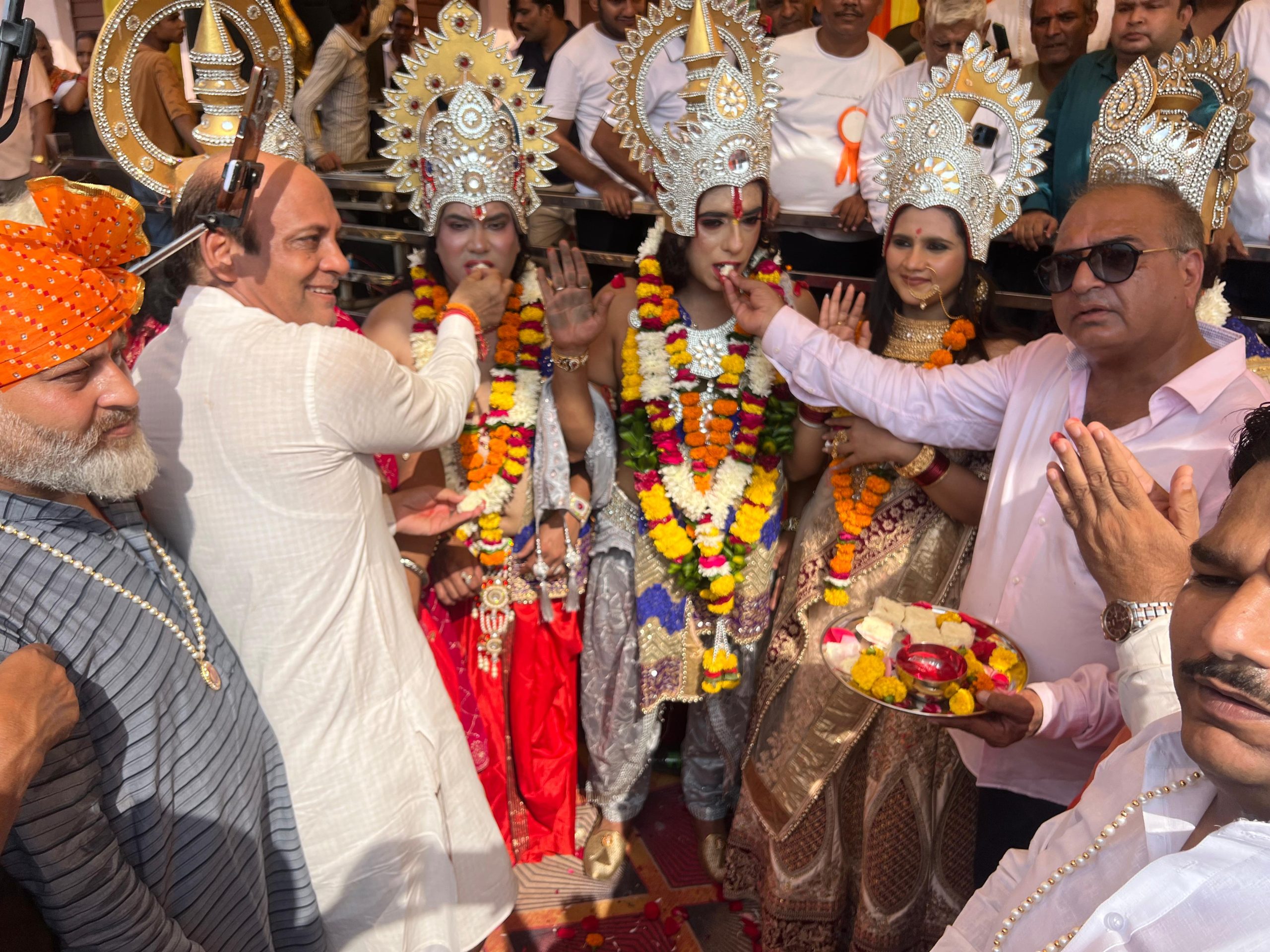 Faridabad Hindustanabtak.com/Dinesh Bhardwaj : सिद्धपीठ श्री हनुमान मंदिर मार्किट नंबर एक और पंजाबी सभा फरीदाबाद के संयुक्त तत्वाधान में आयोजित दशहरा पर्व के तहत आज राम-भरत मिलाप कार्यक्रम का भव्य आयोजन किया गया। इस दौरान एक विशाल और भव्य शोभायात्रा निकाली गई, जोकि मंदिर प्रांगण से शुरु होकर दशहरा मैदान पहुंची, इस दौरान भगवान श्रीराम और भरत की वेशभूषा धारण कलाकारों को देख लोग भावविभोर हो गए। इस शोभायात्रा का शुभारंभ बडखल के पूर्व विधायक चंद्र भाटिया व् रोहित भाटिया ने किया तथा राम भरत मिलाप में राम जी तिलक भटकल विधायक धनेश अदलक्खा ने किया। उन्होंने दशहरा पर्व के सफल आयोजन पर सिद्धपीठ श्री हनुमान मंदिर और पंजाबी सभा सहित अन्य सभाओं का आभार जताते हुए कहा कि दशहरा पर्व भाईचारे व एकता का प्रतीक होता है और इस बार यह पर्व फरीदाबाद में धूमधाम से मनाया गया। उन्होंने कहा कि अधर्म चाहे कितना ही बडा क्यों न हो, लेकिन जीत हमेशा धर्म की होती है। इससे पहले प्रधान राजेश भाटिया व राजकुमार वोहरा ने विधायक धनेश अदलखा व पूर्व विधायक चंद्र भाटिया का फूल मालाओं एवं स्मृति चिन्ह भेंट कर स्वागत किया। 75वें दशहरा पर्व के सफलता पूर्वक पूर्ण होने पर प्रधान राजेश भाटिया व राजकुमार वोहरा ने केंद्रीय राज्यमंत्री कृष्णपाल गुर्जर, विधायक धनेश अदलखा, पूर्व विधायक चंद्र भाटिया सहित शासन प्रशासन व पुलिस का धन्यवाद जताया और उम्मीद जताई कि भविष्य में भी उन्हें ऐसा सहयोग मिलता रहेगा। प्रधान राजेश भाटिया ने बताया कि आज निकाली गई शोभायात्रा में न्यू खुशरंग दशहरा क्लब तीरथ कपूर, बजरंग दशहरा कमेटी, शक्ति सेवा दल प्रधान मोहनलाल अरोड़ा, सिद्ध पीठ हनुमान मंदिर 1.बी ब्लॉक प्रधान भूपेंद्र कुमार, सिद्धपीठ श्री माता वैष्णो देवी मंदिर प्रधान जगदीश भाटिया, दर्शन दरबार चैरिटेबल ट्रस्ट, भाटिया एकता मंच राधेश्याम भाटिया सहित अन्य दर्जनों संस्थाओं ने बढ़चढकर हिस्सा लिया और इसमें अपनी पूर्ण भागेदारी निभाई। इस मौके पर बंसीलाल कुकरेजा, सरदार अमरजीत सिंह भाटिया, अमर बजाज, रिंकल भाटिया, प्रीतम भाटिया, गगन अरोड़ा, सचिन भाटिया, अमित नरूला, कैलाश गुगलानी डॉ रेनू भाटिया, महिंद्र अदलक्खा, अमित आहूजा, मुकेश भाटिया, अप्पू भाटिया, वेद भाटिया, इंद्र चावला, विपिन भाटिया, नीरज भाटिया, सुनील तंवर, राजीव गोयल, व अन्य गण-मान्य लोग शामिल रहे।
