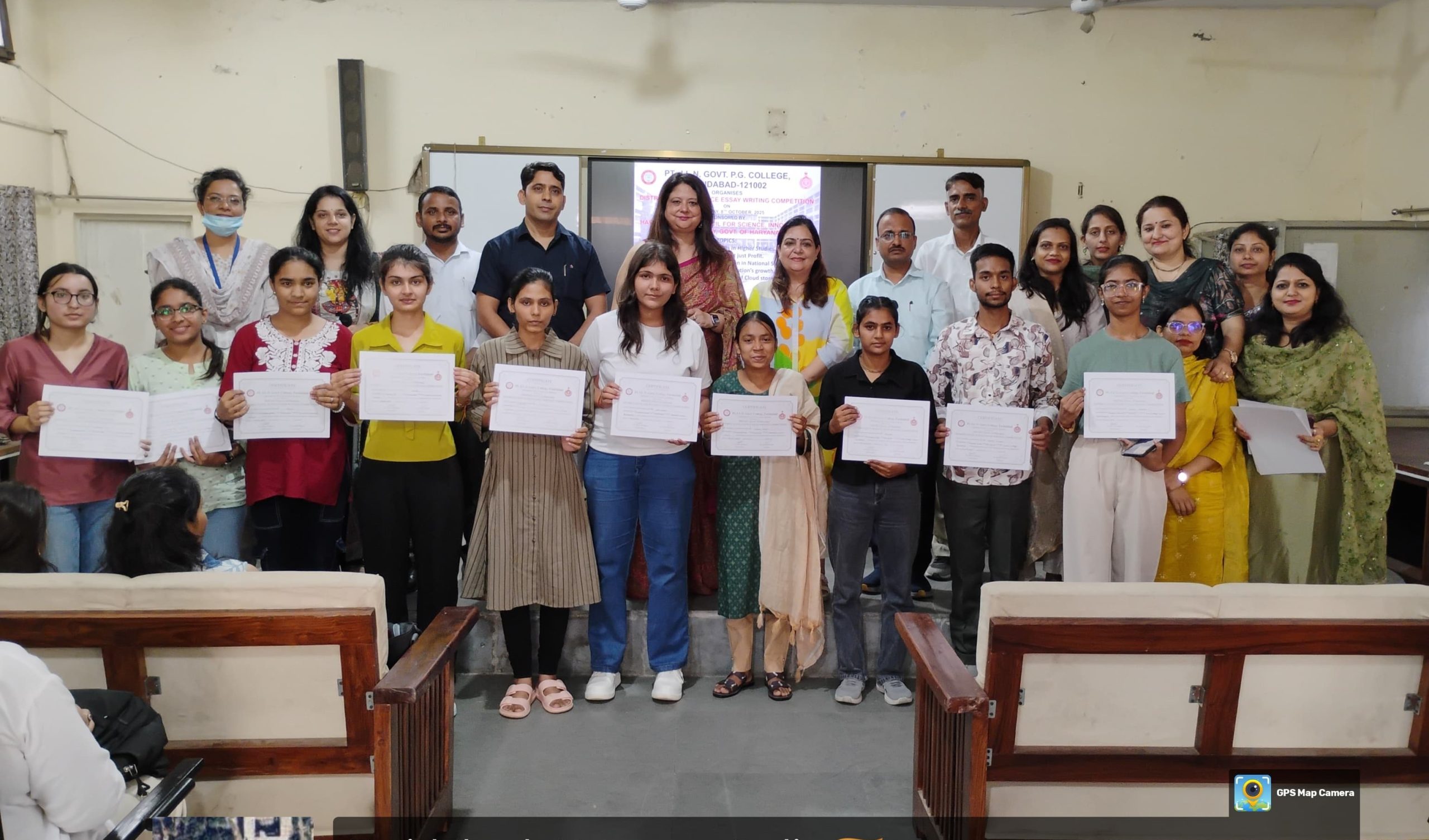 Faridabad Hindustanabtak.com/Dinesh Bhardwaj : राजकीय महाविद्यालय, फरीदाबाद तथा हरियाणा स्टेट काउंसिल फॉर साइंस, इनोवेशन एवं टेक्नोलॉजी, हरियाणा सरकार (HSCSIT) के संयुक्त तत्वावधान में महाविद्यालय प्रांगण में जिला स्तरीय विज्ञान निबंध लेखन प्रतियोगिता का आयोजन किया गया।आयोजन, आदरणीय प्राचार्या डॉ रुचिरा खुल्लर के संरक्षण तथा दिशा निर्देशन में किया गया। गौरतलब है कि HSCSIT के सौजन्य से छात्रों में विज्ञान के प्रति रुचि बढ़ाने के लिए हर वर्ष इस प्रतियोगिता का आयोजन फरीदाबाद जिले में राजकीय महाविद्यालय, फरीदाबाद द्वारा किया जाता है। आयोजन में फरीदाबाद जिले के 8 महाविद्यालयों से आये हुए 28 प्रतिभागियों ने हिस्सा लिया और अपनी प्रतिभा और विचारों को निबंध रूप दिया। निबंध के विषय वर्तमान जीवन के उपयोगी पहलुओं जैसे कि उच्च शिक्षा में बौद्धिक संपदा अधिकार; गृह , लोग और नीति, केवल लाभ नहीं; राष्ट्रीय सुरक्षा में आत्मनिर्भर नवाचार का उदय; राष्ट्र के विकास में डिजिटल प्रौद्योगिकी की भूमिका; क्लाउड स्टोरेज का इतिहास, लाभ और कमियाँ आदि रहे।