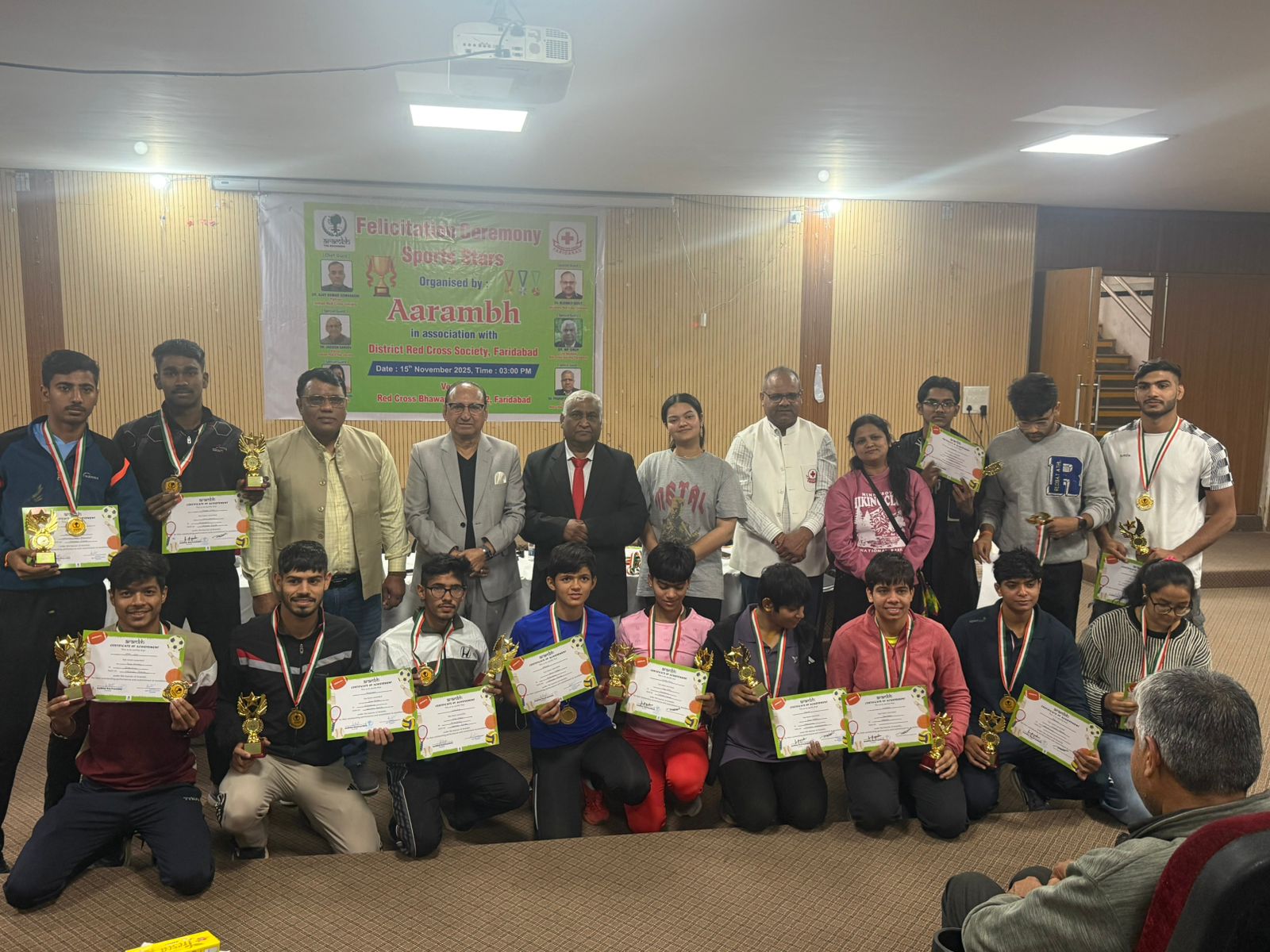Faridabad Hindustanabtak.com/Dinesh Bhardwaj : समाजसेवी संस्था आरम्भ की ओर से रविवार को खिलाड़ियों को सम्मानित करने के लिए स्पोट्र्स स्टार समारोह का आयोजित करके राष्ट्रीय स्तर पर, राज्य स्तर पर नाम रोशन कराने वाले खिलाडिय़ों का सम्मान किया गया। आरम्भ नामक इस कार्यक्रम में जिला रेड क्रॉस सोसायटी फरीदाबाद का विशेष योगदान रहा।