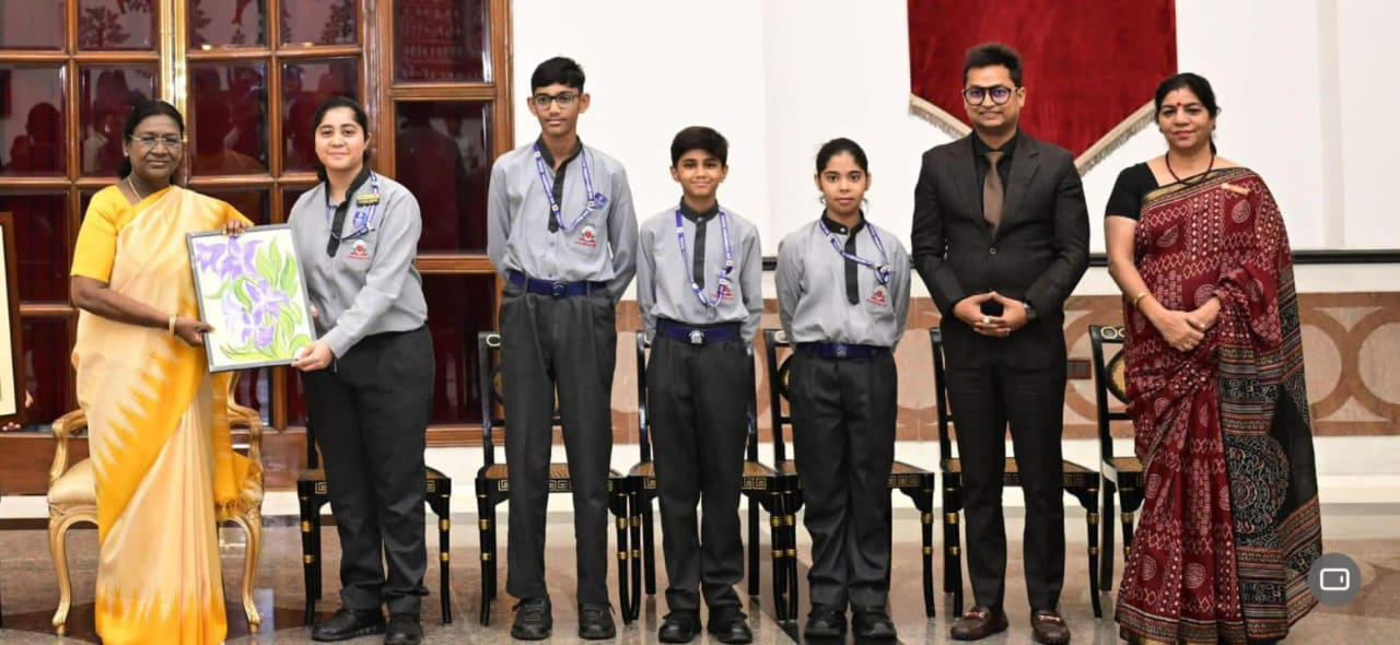 Faridabad Hindustanabtak.com/Dinesh Bhardwaj : बाल दिवस के अवसर पर 14 नवम्बर 2025 को SRS International School के प्रतिनिधिमंडल ने राष्ट्रपति भवन में भारत की माननीय राष्ट्रपति श्रीमती द्रौपदी मुर्मु से शिष्टाचार भेंट की। यह मुलाकात स्कूल के लिए गौरव का विषय रही और समाजसेवा व शिक्षा के क्षेत्र में हमारे 11 वर्षों के समर्पित प्रयासों को राष्ट्रीय स्तर पर विशेष मान्यता मिली।