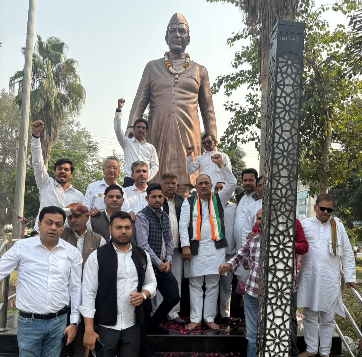 Faridabad Hindustanabtak.com/Dinesh Bhardwaj : भारत के प्रथम प्रधानमंत्री पंडित जवाहरलाल नेहरू की 136वीं जयंती आज जिला कांग्रेस कमेटी फरीदाबाद में नीलम चौक स्थित उनकी प्रतिमा पर एक श्रद्धांजलि सभा आयोजित कराके मनाई गई।