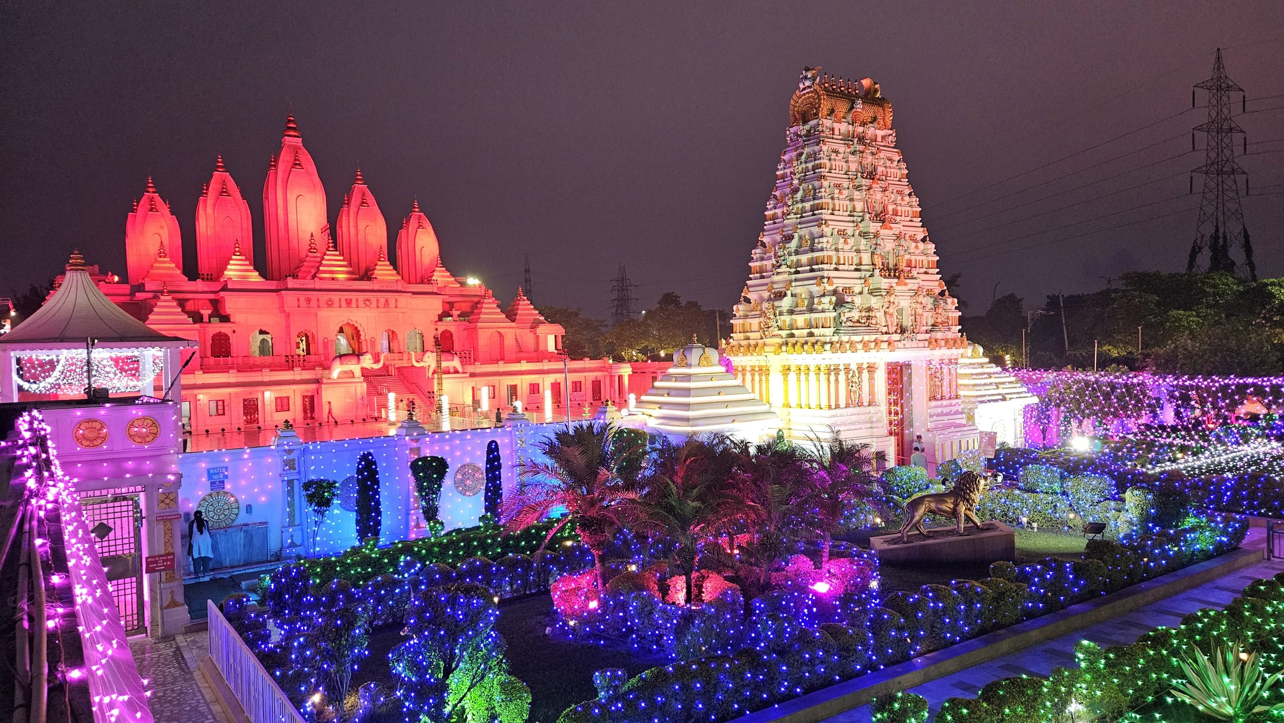 Faridabad Hindustanabtak.com/Dinesh Bhardwaj : दीपावली के स्वागत के लिए सूरजकुंड रोड स्थित श्री सिद्धदाता आश्रम श्री लक्ष्मी नारायण दिव्यधाम रंग बिरंगी रोशनी से सजाया गया है। अधिष्ठाता जगदगुरु स्वामी पुरुषोत्तमाचार्य महाराज का कहना है कि समस्त वैभव प्रदान करने वाली मां महालक्ष्मी का स्वागत वैभवपूर्ण ढंग से किया जाना चाहिए। इसके लिए व्यक्ति को अपने पास मौजूद संसाधनों का प्रयोग करने में कोई कोताही नहीं बरतनी चाहिए। इसके लिए किसी विशेष आयोजन की आवश्यकता बेशक नहीं है लेकिन हमारे पास जो भी संसाधन उपलब्ध हैं उनका प्रयोग कर हमें मां का स्वागत अवश्य ही करना चाहिए। उन्होंने कहा कि दीपावली का पर्व समाज में संपन्नता, समृद्धि और विकास का द्योतक है। जब हम मां महालक्ष्मी का स्वागत हर्ष एवं उल्लास के साथ करते हैं तो वह भी शीघ्र प्रसन्न होती हैं।