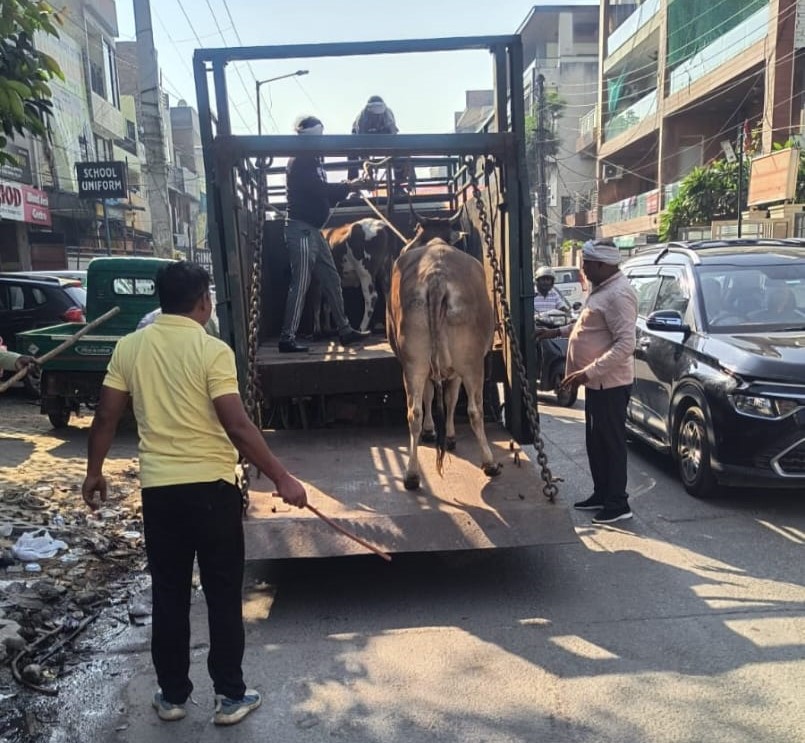 Faridabad Hindustanabtak.com/Dinesh Bhardwaj : 7 नवम्बर। नगर निगम फरीदाबाद के आयुक्त श्री धीरेंद्र खड़गटा के दिशा-निर्देशों एवं हरियाणा सरकार के आदेशों की पालना करते हुए नगर निगम की पब्लिक हेल्थ की टीम द्वारा विशेष कार्रवाई की गई। सेक्टर 7, जीवन नगर, गोंछी, सहित अन्य स्थानों से 25 गौवंश पशुओं को सड़कों से पकड़कर गौशाला पहुंचाने का कार्य किया गया है।