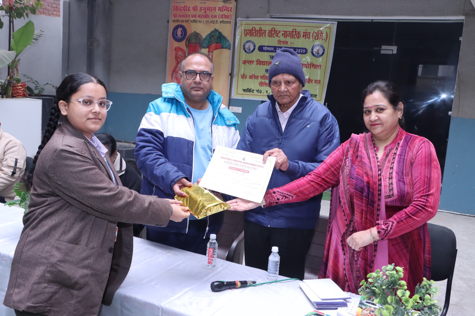 Faridabad Hindustanabtak.com/Dinesh Bhardwaj : डॉ अनिल मलिक श्री सनातन धर्म महाबीर दल सीनियर सेकेंडरी स्कूल मार्केट नंबर 1 व प्रगतिशील वरिष्ठ नागरिक मंच के संयुक्त तत्वाधान में स्कूल प्रांगण में अंतर विद्यालय भाषण प्रतियोगिता का आयोजन किया गया। प्रतियोगिता में स्कूली बच्चों ने बढ़-चढक़र हिस्सा लिया और सभी छात्र छात्राओं ने प्रदूषण की समस्या एवं समाधान, शिक्षा में संस्कारों का समावेश व शिक्षा में अनुशासन जैसे मुद्दों पर अपने विचार सांझा किए। इस मौके पर प्रधान डा. राजेश भाटिया ने प्रतियोगिता में छात्र-छात्राओं द्वारा रखे विचारों पर उनकी प्रशंसा करते हुए कहा कि मौजूदा समय में प्रदूषण का स्तर बढ़ता जा रहा है, जो कि सभी के लिए हानिकारक है, इसलिए हम सभी का दायित्व बनता है कि हम अपने घरों व आसपास के एरियों में प्रदूषण की रोकथाम के लिए लोगों को जागरुक करे ताकि हमें शुद्ध और स्वच्छ हवा मिल सके। वहीं डॉ भाटिया ने शिक्षा में अनुशासन को लेकर कहा कि अनुशाासन में रहकर ही शिक्षा हासिल की जा सकती है और जो बच्चे ऐसा करते है, वह जिंदगी में हमेशा सफलता हासिल करते है, इसलिए अपने गुरुजनों, परिवारजनों और बड़े बुजुर्गाे का सम्मान करे और अपने संस्कारों को कभी न भूले क्योंकि संस्कारवान व्यक्ति ही देश व समाज निर्माण में अपना योगदान दे सकता है। कार्यक्रम में प्रगतिशील वरिष्ठ नागरिक मंच के पदाधिकारियों ने भी हिस्सा लिया और छात्र-छात्राओं द्वारा रखे गए विचारों की मुक्तकंठ से प्रशंसा की और उनकी हौंसला अफजाई की। प्रतियोगिता में विजेता (प्रथम स्थान भवमूल चंदानी-केएल मेहता स्कूल 5 नंबर ई ब्लॉक, द्वितीय स्थान कौशिकी शर्मा-केएल मेहता स्कूल 5 नंबर ई ब्लॉक व तृतीय स्थान मनप्रीत कौर-केएल मेहता ने एच 1, नेहरू ग्राउंड ने प्राप्त किए)छात्र-छात्राओं को प्रधान डॉ राजेश भाटिया व प्रगतिशील वरिष्ठ नागरिक मंच के प्रधान रामफूल सिंह भाटी व अन्य पदाधिकारियों ने पुरस्कार देकर सम्मानित किया और उनके उज्जवल भविष्य की कामना की। इस मौके पर डॉ अनिल मलिक सीनियर सेकेंडरी स्कूल के उप-प्रधान- मोक्षित भाटिया, सचिव-जनक भाटिया, महासचिव-मनोज कुमार रतडा़, कोषाध्यक्ष-सचिन भाटिया, कार्यकारिणी सदस्य-वी के मलिक व रंजय भाटिया, स्कूल समन्वयक-सोनिया अरोड़ा, रिंकल भाटिया प्रेम बब्बर भारत कपूर गगन अरोड़ा तथा प्रगतिशील वरिष्ठ नागरिक मंच के प्रधान-राम फूल सिंह भाटी, उप-प्रधान-हंसराज कपासिया व ओपी यादव, कोषाध्यक्ष-एस एस व्यास, सचिव-रमेश मेहता, लीगल एडवाइजर-ए एस नागपाल, ऑर्गेनाइजिंग सेक्रेट्री-ओ पी ढींगरा, कार्यकारिणी सदस्य-कृष्ण गोपाल खत्री व सुभाष कथुरिया उपस्थित रहे।